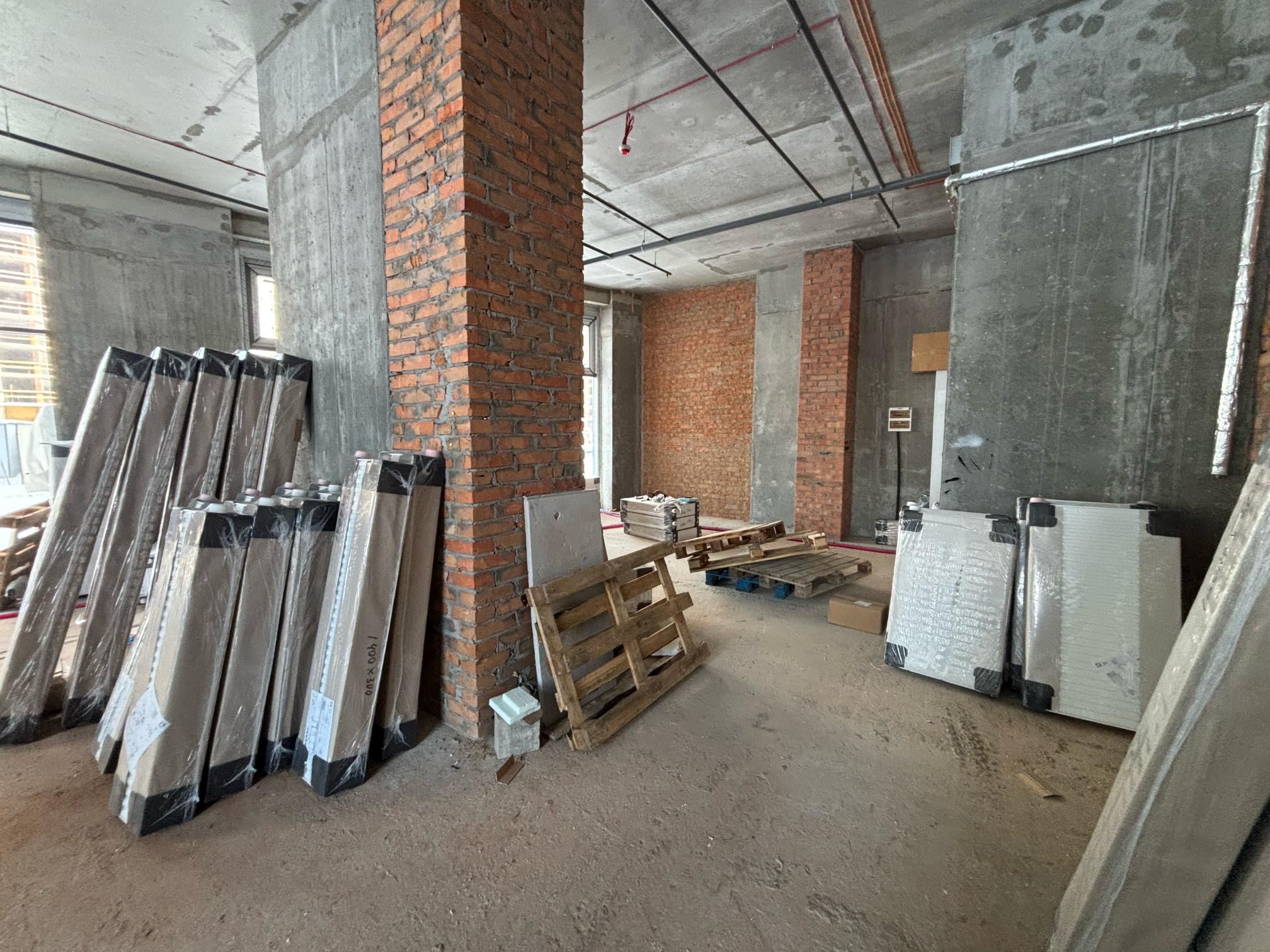 продовжуються роботи по оздобленню лобі, розпочаті роботи з монтажу підвісних стель з ГКЛВ;