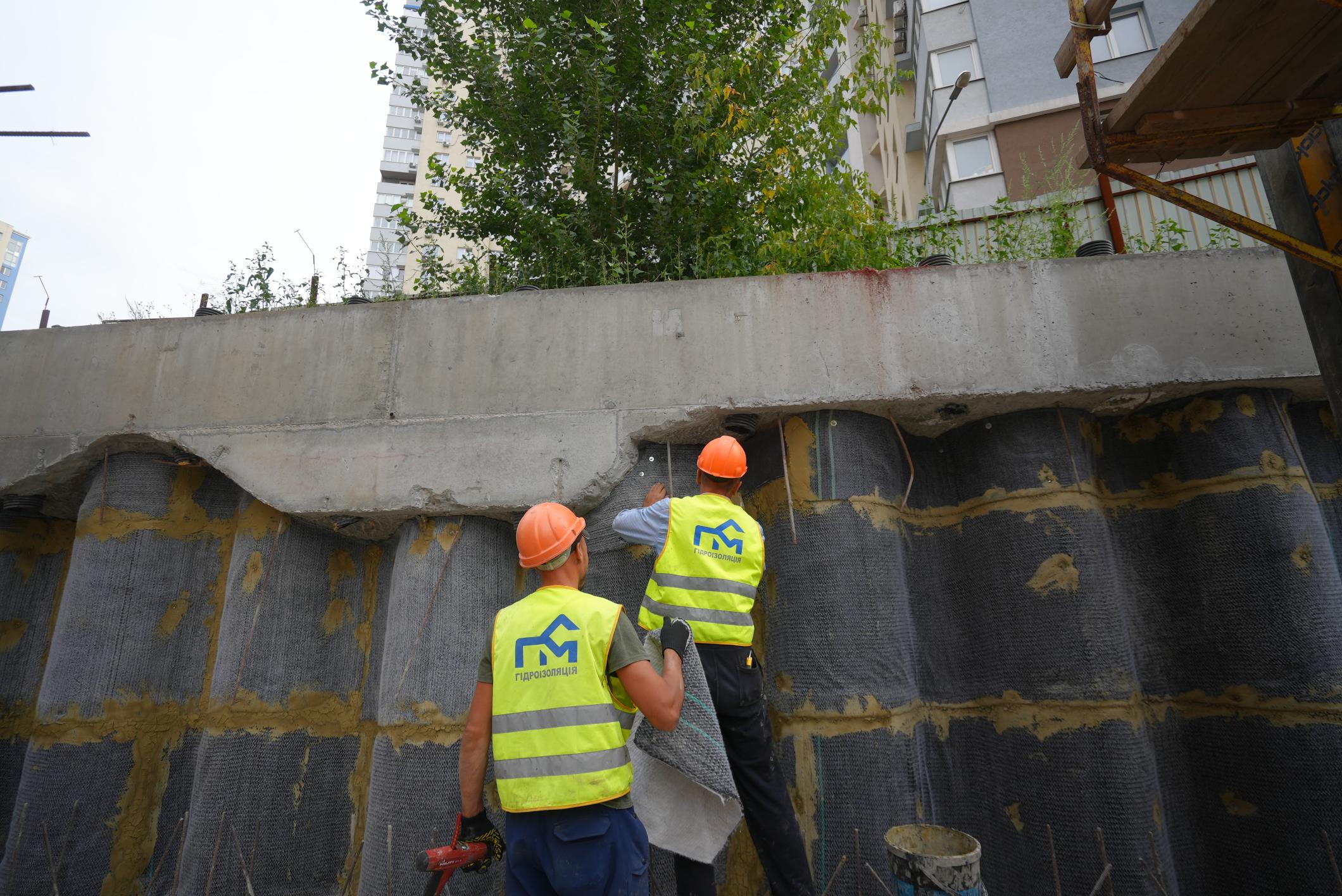• виконуються роботи з влаштування гідроізоляції паль, ростверків та гідроізоляції плити ростверку;